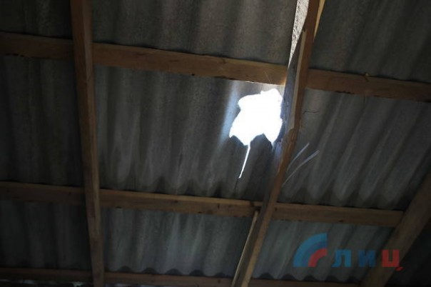 "Утром в 5 часов мы слышали свисты, а затем какие-то хлопки. Взрыва как такового и не было. Сначала и не поняла, что такое произошло, но затем пошли, открыли двери, залезли на крышу и оказалось, что крыша там пробита, затем в одну комнату, потому в другую и только потом он (снаряд) вылетел, - рассказала очевидец обстрела Ольга Осадчая. - Летело скорее не со стороны Станицы, а, похоже, что с Кондрашевки".