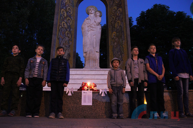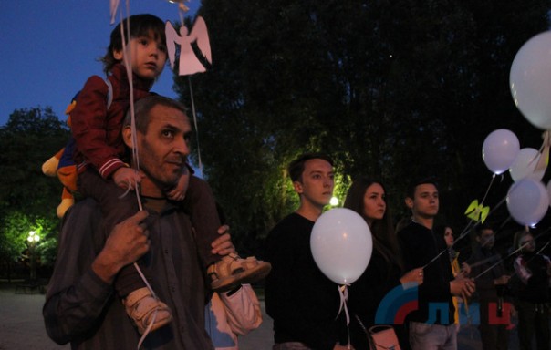 1 июня сотни горловчан собрались на площади Победы, чтобы принять участие в акции «Ангелы» памяти погибших в ходе военной агрессии со стороны украинских силовиков юных жителей Донбасса.