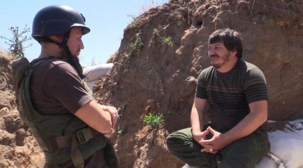 Писатель Захар Прилепин на передовой в Донбассе