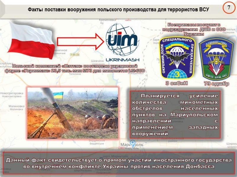 Минометы, для которых теперь поставлены мины, были переданы Польшей Украине в 2017 году. Данный факт свидетельствует о прямом участии иностранного государства в донбасском конфликте.