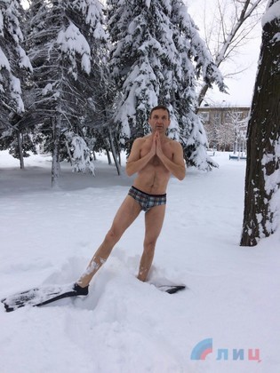 Моржи Луганска отметили праздник снега в Луганске оригинальным фото-флешмобом