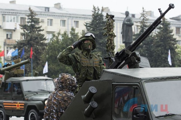Парад военной техники и вооружения, как и в Донецке, возглавил танк Т-34 в сопровождении военных мотоциклов времен Великой Отечественной войны.
