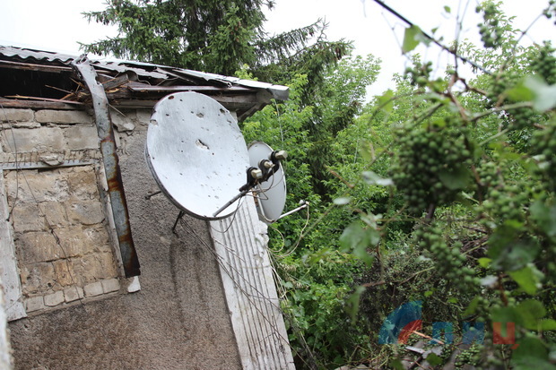 Сегодня подразделения 14 бригады под командованием военного преступника ВОЙЧЕНКО из района населенного пункта НОВОТОШКОВСКОЕ из станковых противотанковых гранатометов и минометов обстреляли населенный пункт ГОЛУБОВСКИЙ, цинично вели прицельный огонь по жилым домам. В результате обстрела повреждены ЧЕТЫРЕ домовладения на улице Юбилейной. В одном из домов снаряд пробил крышу дома, в котором в момент обстрела находилась семья с ТРЕМЯ маленькими детьми, лишь только по счастливой случайности никто из мирных жителей не пострадал.