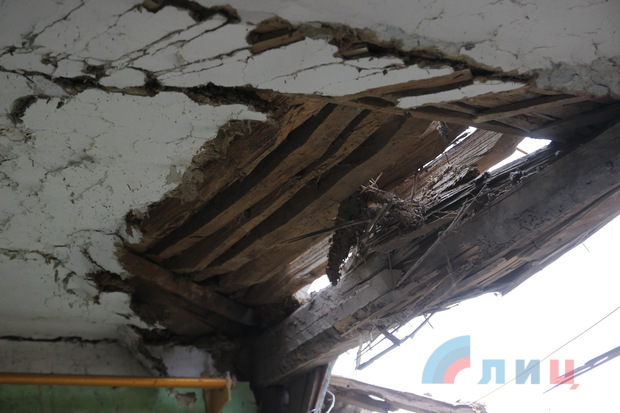 "Дети в этот момент в доме находились, мина упала прямо между кроватями, можно сказать метр (от мины до кровати). Младшему два года всего, на ноги ему штукатурка упала. Ребенок хромает сейчас, но доктора посмотрели, сказали, что все в порядке, - сообщил мужчина. - Прилетело со стороны Новотошковки, у них там и минометные и танковые позиции".