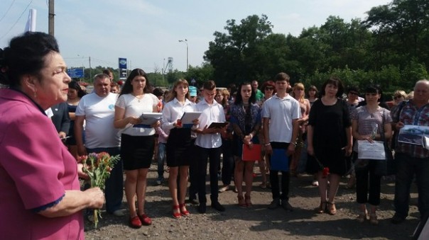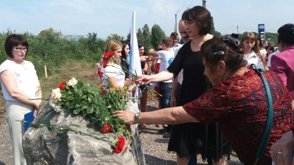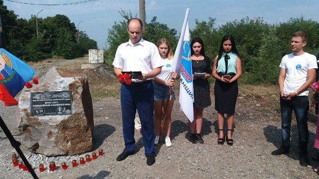 Жители Красного Луча в пятую годовщину авиаудара ВСУ открыли знак в память о погибших