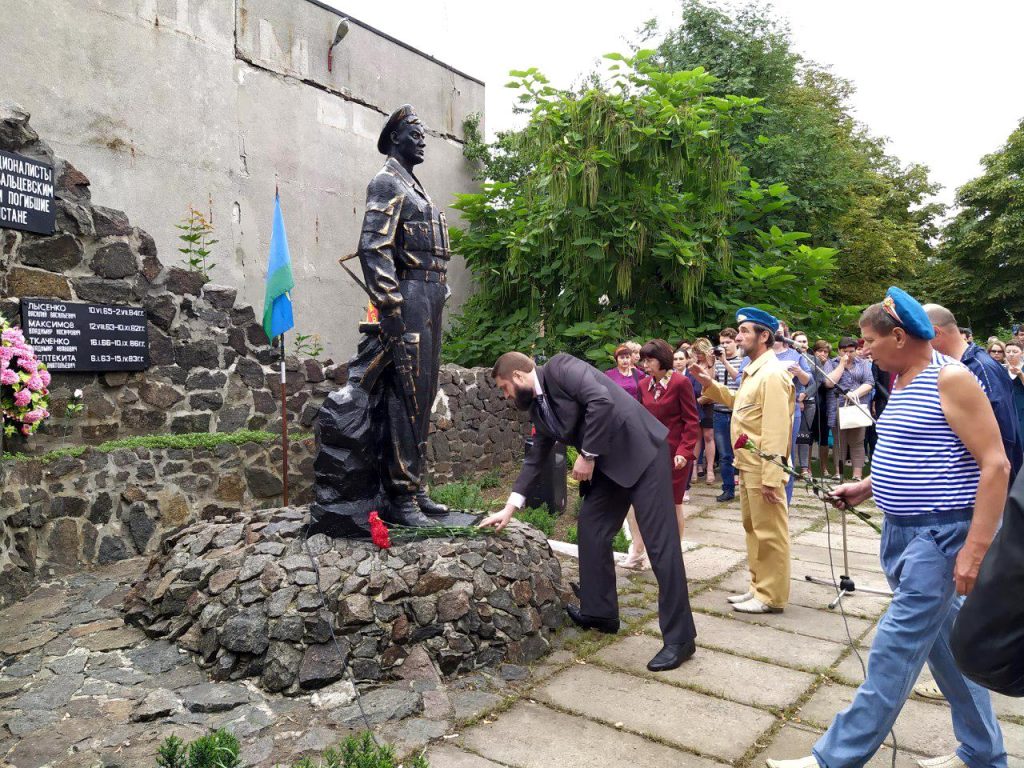 Ветераны ВДВ в День десантных войск возложили цветы к памятнику погибшим «афганцам» в Дебальцево