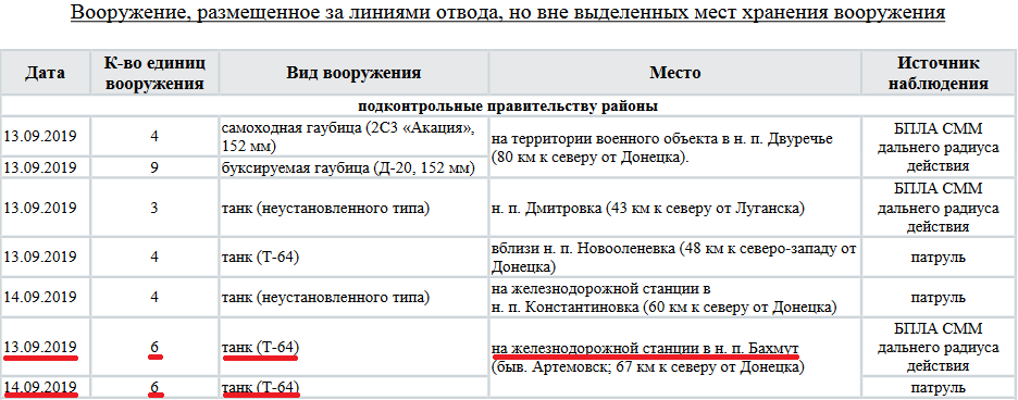 в отчете от 12.09.2019 г. зафиксировано наличие танков и самоходных гаубиц 2С3 «Акация»: