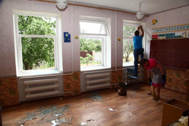 В Тельмановском районе восстанавливают школу, поврежденную в ходе обстрелов (Фото)
