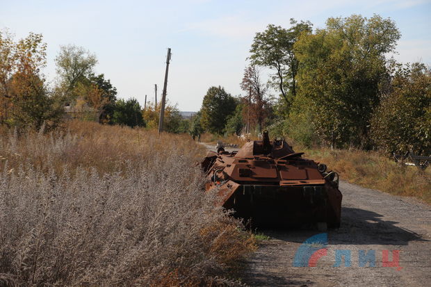 "В 2014 году сюда зашли украинские войска, но затем ополчение Донбасса их выгнало, они понесли потери, потеряли бронетехнику, но, к сожалению, отогнали их недалеко", - рассказал защитник ЛНР.