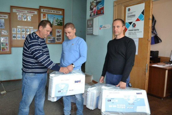 Депутат Народного Совета ДНР Александр Банах и глава администрации района, секретарь местного отделения ОД «ДР» Александр Спинул передали шесть продуктовых наборов для жителей, оказавшихся в сложной жизненной ситуации, а также восемнадцать упаковок памперсов для лежачих больных.