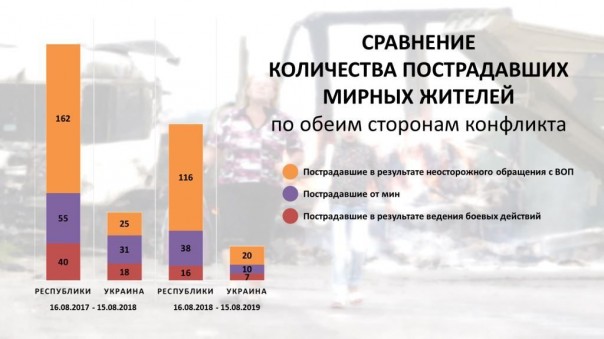 Речь идет о сведениях за период с 16 августа 2018 года по 15 августа 2019 года. Данные подготовлены на основании отчетов ООН и ОБСЕ и информации, собранной общественниками на местах происшествий.
