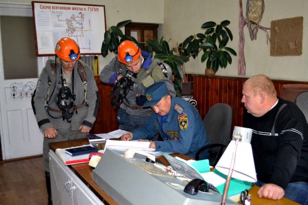 Согласно замыслу учений, условный пожар возник на сопряжении 10 западного откаточного штрека пласта k22 с камерой водоотлива 10-го горизонта. Аварией застигнут 1 горноробочий, выполнявший работы по откачке воды в камере водоотлива 10-го горизонта.