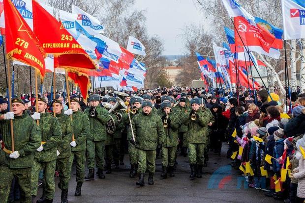 Участники мероприятия почтили погибших в боях за Луганск минутой молчания, затем возложили цветы к братской могиле. Также к могиле красноармейцев возложили Гирлянду Славы военнослужащие Народной милиции ЛНР в сопровождении военного оркестра.