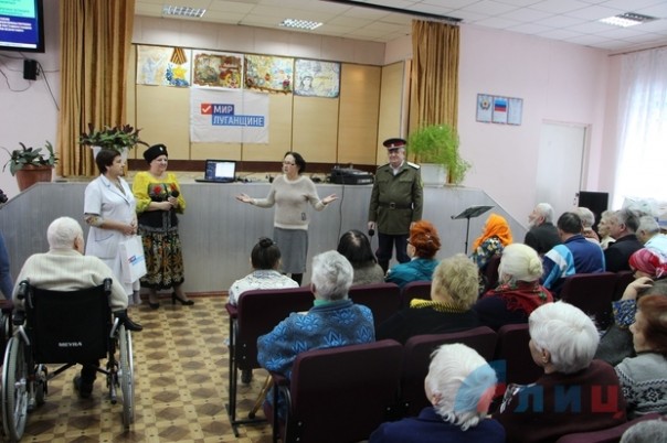 Представители общественного движения (ОД) "Мир Луганщине" поздравили подопечных Луганского республиканского госпиталя ветеранов войны имени маршала Еременко с 77-летием освобождения Луганска от немецко-фашистских захватчиков, передав им 250 продуктовых наборов.
