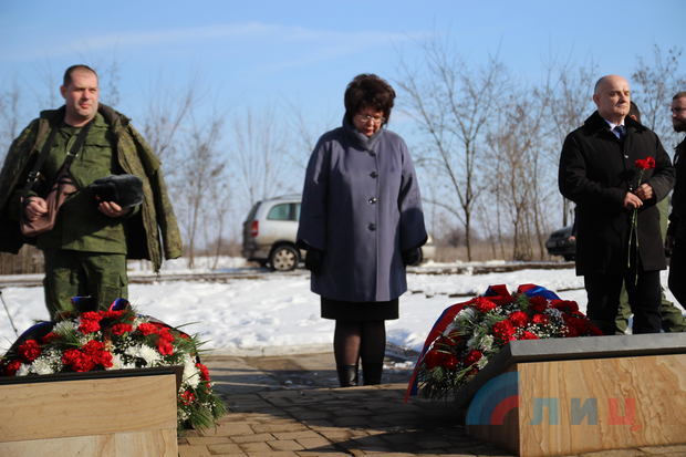 Краснолучане минутой молчания почтили память погибших в Чернухино-Дебальцевской операции и возложили цветы к памятному стенду.