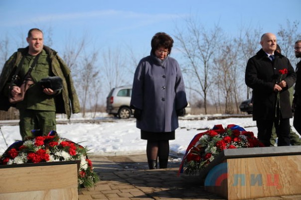 Собравшиеся почтили память погибших воинов минутой молчания. В завершение мероприятия его участники возложили цветы к мемориалу погибшим ополченцам и бойцам Народной милиции.