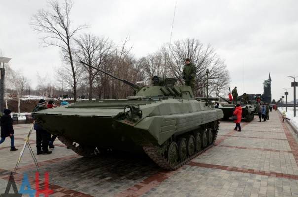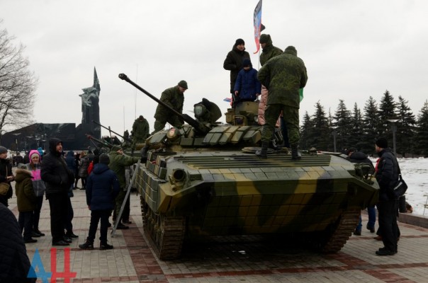 Выставка военной техники и амуниции, организованная в рамках празднования Дня защитника Отечества, собрала в Донецке сотни жителей и гостей города. Традиционно она прошла у памятника «Твоим освободителям, Донбасс» в парке Ленинского Комсомола.