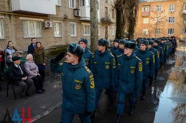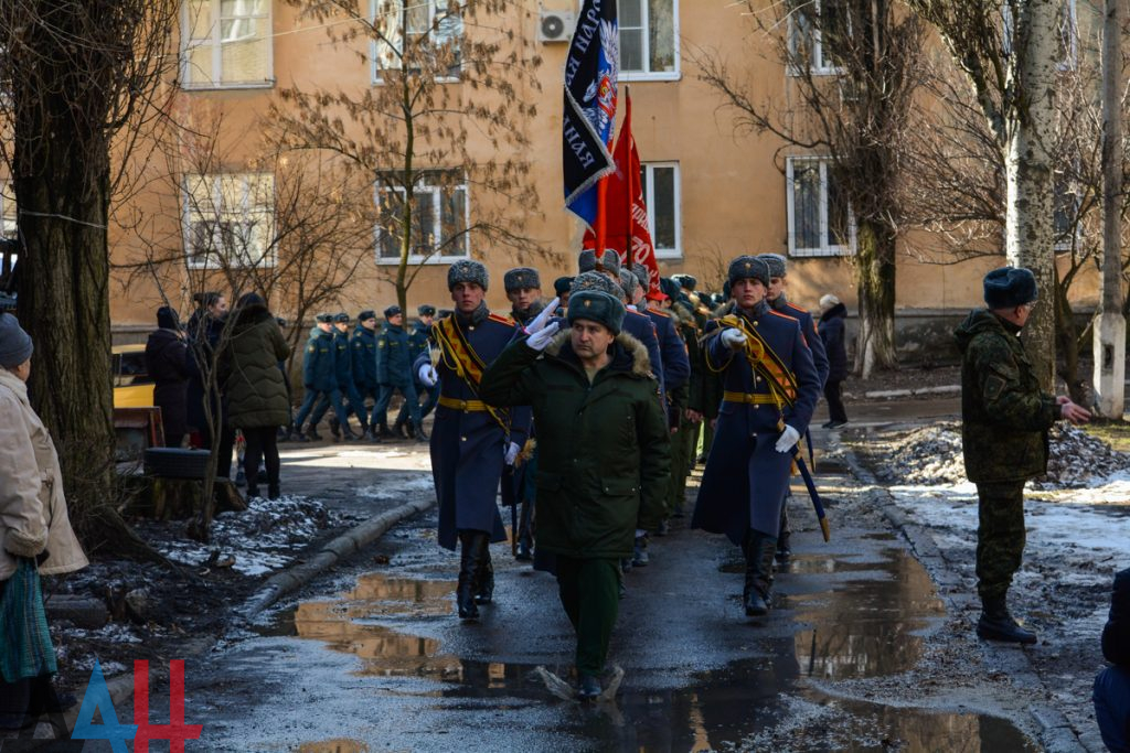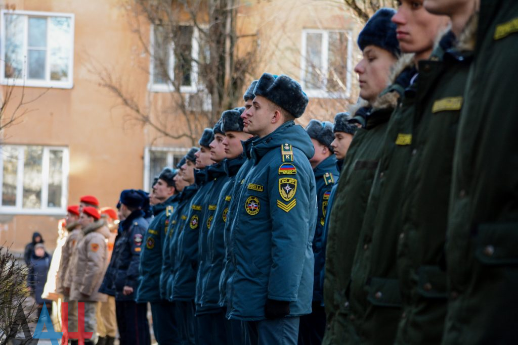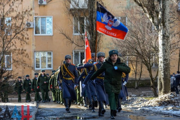 Сначала перед ветераном маршем прошла колонна курсантов Донецкого высшего общевойскового командного училища, за ними проследовали учащиеся академий гражданской защиты МЧС и внутренних дел ДНР, а также воспитанники военно-патриотического движения «Молодая Гвардия – Юнармия». Аккомпанемент параду обеспечивал духовой оркестр ДонВОКУ.