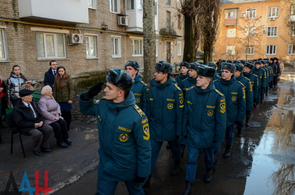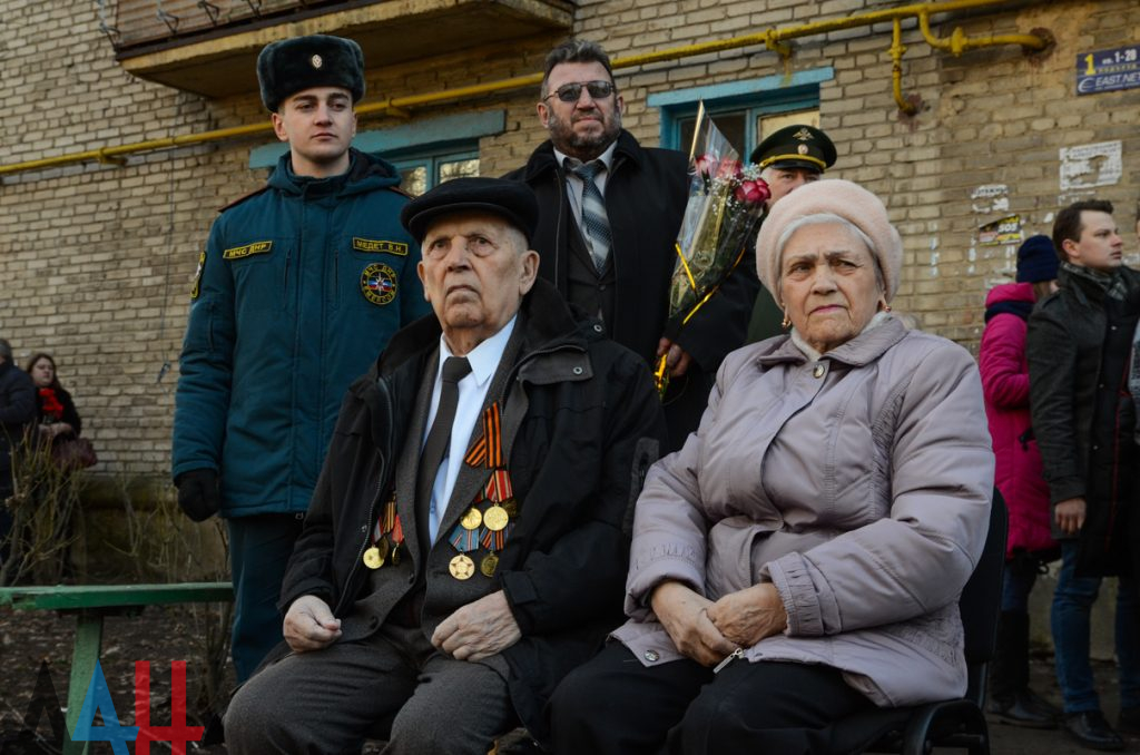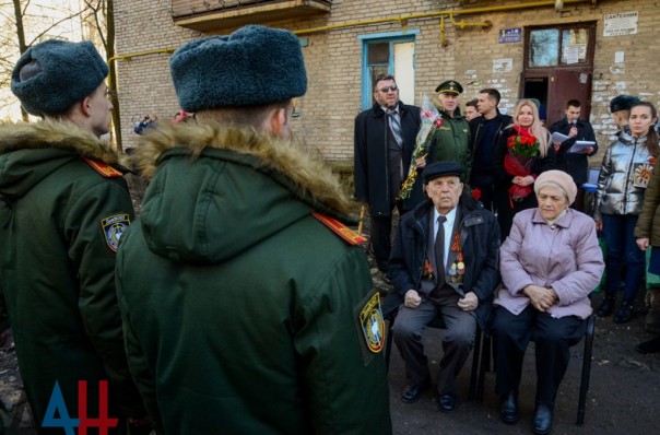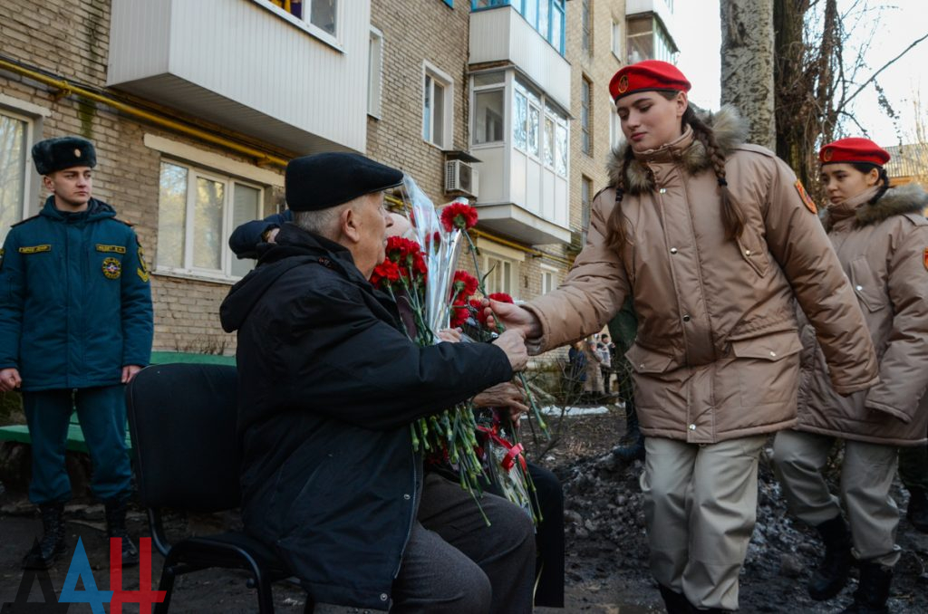 Парадные расчеты, оркестр и подарки: В Донецке поздравили ветерана ВОВ с 94-летием