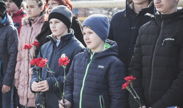Жители и гости города почтили память бойцов минутой молчания и возложили цветы к мемориальным знакам.