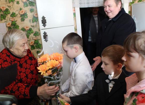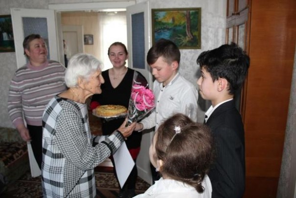 Дети и общественники навестили ветеранов войны Таисию Кусенкову, Раису Арлашину и Валентину Ошиевскую. Гости подарили ветеранам поздравительные открытки и сладкие угощения, приготовленные своими руками.