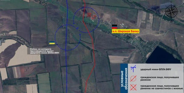 Как уже сообщалось, вчера в 15:50 вооруженные формирования Украины, используя ударный БПЛА, нанесли удар по Широкой Балке.