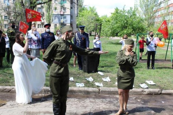 Алчевцы ко Дню Победы устроили для 97-летнего ветерана персональный концерт