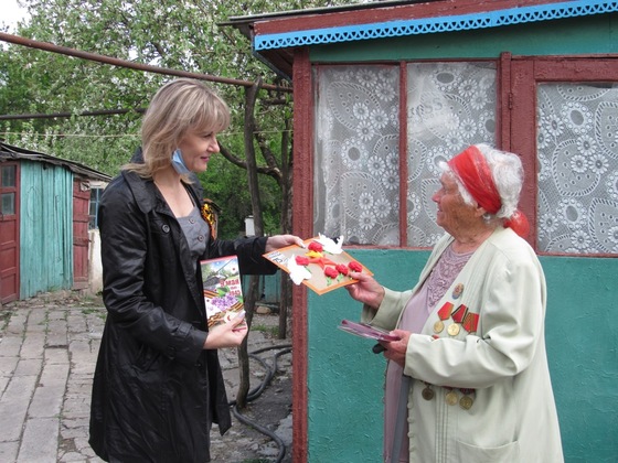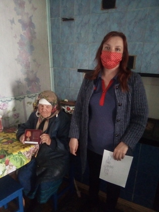 Одной из первых юбилейную медаль "75 лет Победы" получила участница боевых действий Раиса Ткаченко, которую посетил первый заместитель главы горрайадминистрации Виктор Якимов. Он также вручил ветерану продуктовые наборы от главы Республики и главы администрации Краснодона и Краснодонского района Сергея Козенко.