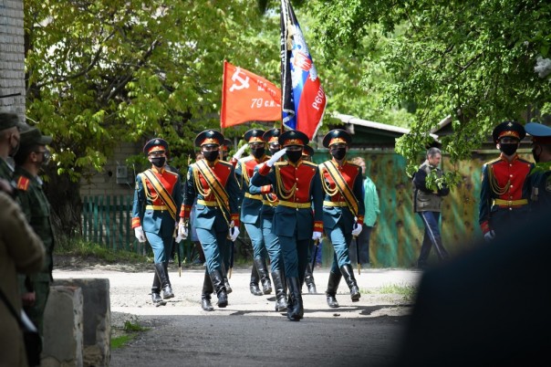 Сегодня, 24 мая, общественное движение «Донецкая Республика» совместно с Донецким высшим общевойсковым командным училищем в Дебальцево провели парады для ветеранов Великой Отечественной войны – Александра Семеновича Куденко и Марии Александровны Нефедовой. Курсанты училища в парадных расчётах прошли строевым маршем под песни Великой Победы. Об этом сообщает пресс-служба организации.