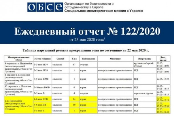 Однако, опубликованный вчера вечером официальный отчёт СММ ОБСЕ содержит информацию доказывающую совершенно обратное: в районе проведения ремонтных работ 22.05.20 наблюдатели зафиксировали: