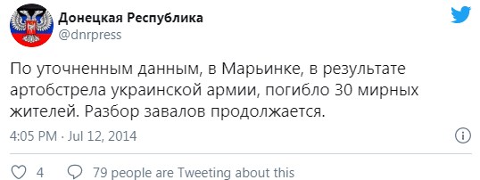"Во всех случаях угол и форма воронок, а также повреждения стен зданий со стороны линии фронта убедительно указывали на то, что огонь велся украинскими силами и бандформированиями. Близость мест поражения к линии фронта также делает маловероятной, а в ряде случаев и исключает, возможность обстрела со стороны ополченцев. В двух случаях реактивные снаряды одновременно поражали районы расположения опорных пунктов или блокпостов ополченцев и жилую застройку, что дополнительно указывает на ведение огня правительственными силами" - сообщала тогда Human Rights Watch.