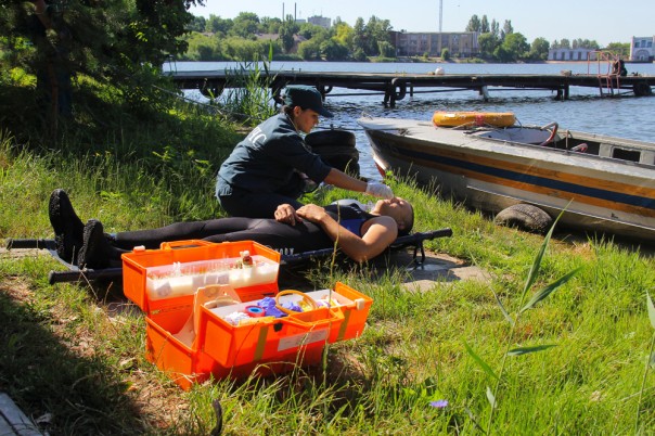 Фельдшер группы водолазно-спасательных работ МЧС провела инструктаж по оказанию первой помощи утопающему человеку. Поэтапно спасательные мероприятия были отработаны на водолазе-спасателе.