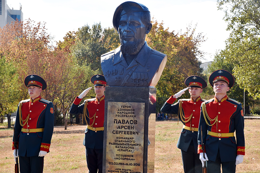 Сегодня, 16 октября, в четвертую годовщину гибели легендарного комбата, в Донецке был открыт бюст Героя Донецкой Народной Республики Арсена Павлова (Моторола). D торжественной церемонии открытия принял участие Глава Республики Денис Пушилин.