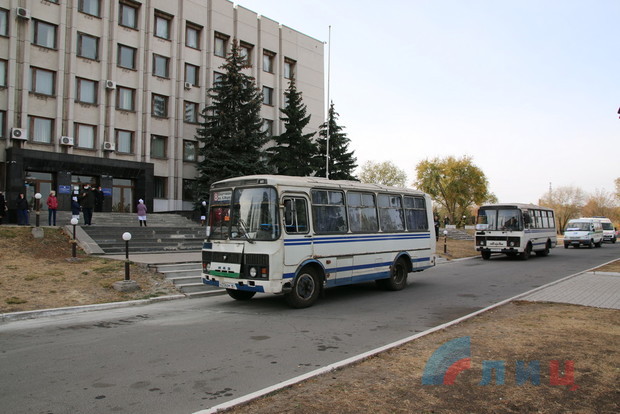 Весь процесс проходит интенсивно, но спокойно: инструкторы с красными повязками на рукаве четкими действиями на всем маршруте - от кабинета до автобуса - препятствуют появлению паники у людей.