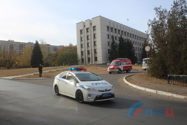 "Внимание! Срочная эвакуация! Всем посетителям первого этажа и сотрудникам здания администрации срочно покинуть здание!" - этой командой, озвученной в мегафон представителем управления по вопросам ЧС администрации Алчевска, был дан сигнал тревоги.