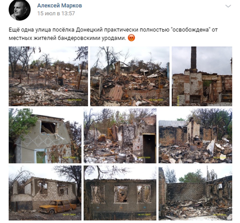 …Передовые рубежи остались, вот только «Доброго» там уже никто не увидит. Остается лишь память да призраки всех ушедших «призраковцев», которых так и не удалось победить фашиствующим отморозкам. Видео, на котором Алексей Марков читает в рамках проекта «Воюющая поэзия Победы» стихотворение Константина Симонова «Жди меня», было записано в мае текущего года на тех самых передовых рубежах… Источник