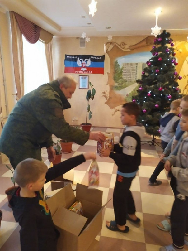 Военнослужащие ДНР по случаю Рождества передали подарки воспитанникам Амвросиевской школы-интерната (Фото)