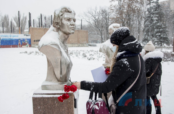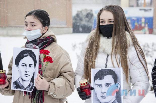 Участники акции напомнили собравшимся о подвиге героев "Молодой гвардии", их трагической судье, после чего почтили память погибших подпольщиков минутой молчания, зажгли лампады и возложили цветы к установленным в сквере бюстам молодогвардейцев. В завершение митинга ученик 10 класса луганской гимназии № 30 Егор Щелконогов прочитал свое стихотворение, посвященное героям-подпольщикам.