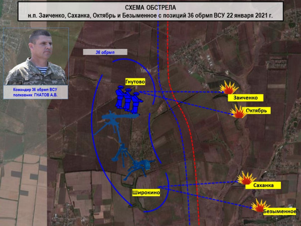 22 января, с позиций 36-й бригады ВФУ, были подвергнуты минометному и гранатометному обстрелу районы н.п. Заиченко, Октябрь, Безыменное и Саханка, всего было выпущено 17 мин и более 25 гранат различного типа.