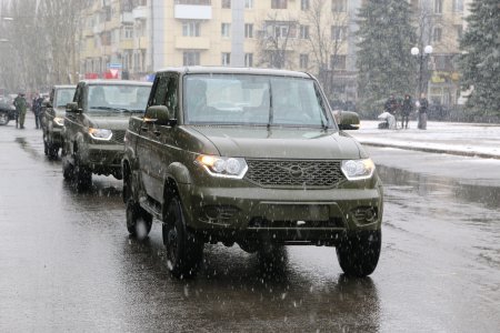 Глава Луганской Народной Республики Леонид Пасечник передал Народной милиции первую партию новых автомобилей повышенной проходимости УАЗ «ПАТРИОТ».