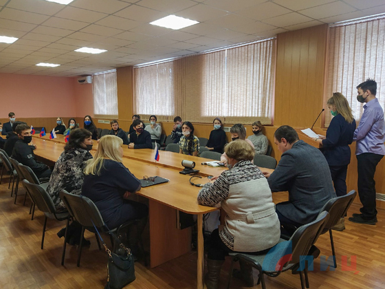 Собравшиеся обсудили события Русской весны и становление Республики. Председатель перевальской районной организации "Афганцы Чернобыля" Татьяна Сокол рассказала молодежи о своем муже Александре Соколе, который являлся первым комендантом Перевальска и погиб в районе Попасной в боях за Республику.