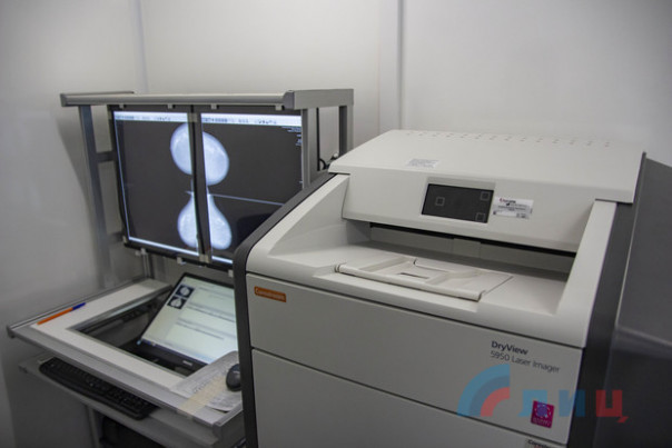 "Маммограф получен по программе развития здравоохранения ЛНР. На данном аппарате мы обследуем молочную железу на выявление различных патологий, доброкачественных и злокачественных образований для дальнейшего прохождения лечения женщинами в различных лечебных учреждениях", - сказала заведующая отделением лучевой диагностики ЛРКБ Светлана Кононова.