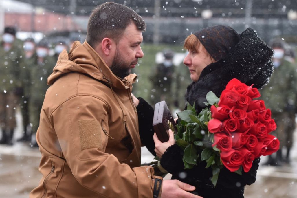 Сегодня, 23 марта, Глава Донецкой Народной Республики Денис Пушилин вручил медаль «Золотая Звезда» вдове гвардии капитана Сергея Носовского, которому присвоено звание Героя Донецкой Народной Республики, а также передал 19-летней дочери погибшего гвардии младшего сержанта Владимира Пятака Георгиевский крест IV степени. Об этом сообщает пресс-служба АГ ДНР.