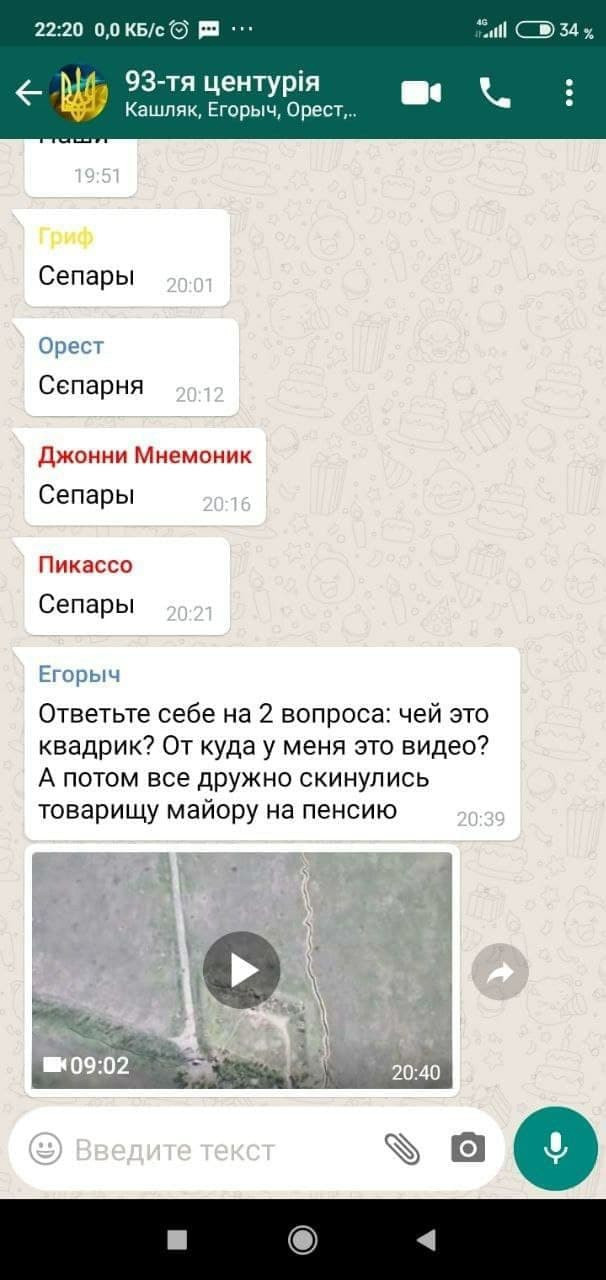 Вот ещё одно видео по уничтожению блокпоста 128 бригады, на котором стояли правосеки, и как оказалось, невинные солдатики 128 бригады, о чём я рассказывал в предыдущем сообщении. Это видео снято беспилотником 93 бригады, который корректировал этот акт возмездия 5 мая. Они поделились им в своём секретном чате, но мои хакеры всё держат под контролем. Конечно, я не стал выкладывать его полностью, там слишком много уныния и грусти, поэтому я сделал коротенькую и весёленькую нарезку.