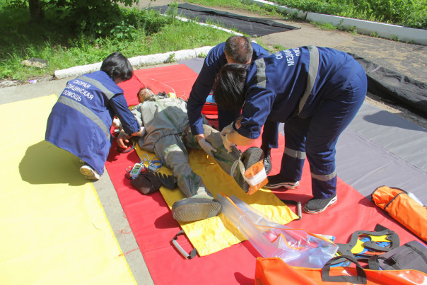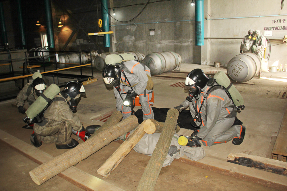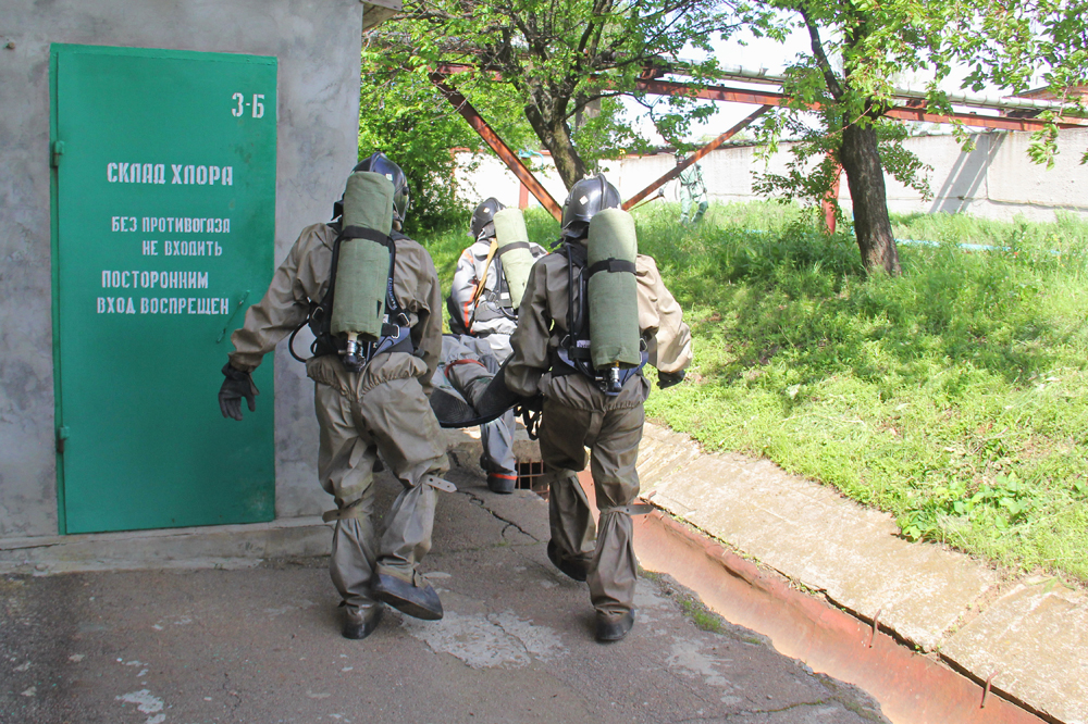 Подразделениями Государственного пожарно-спасательного отряда г. Горловка на практике отработаны действия по локализации и ликвидации очага химического заражения на территории склада хлора. Проведена эвакуация работников станции в безопасную зону. Условно пострадавшим оказана необходимая медицинская помощь.