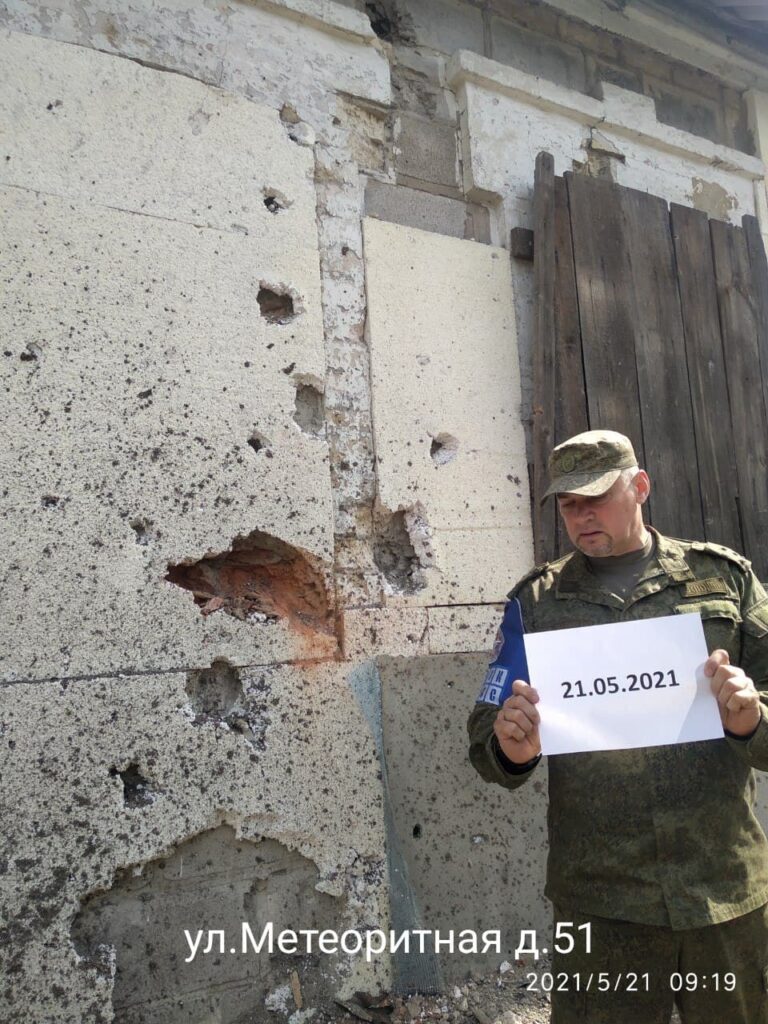 Представительство ДНР в Совместном центре контроля и координации режима прекращения огня опубликовало материалы, подтверждающие факты обстрелов Петровского района Донецка со стороны вооруженных формирований Украины 20 мая. В результате обстрелов были повреждены четыре дома и линия электропередачи.