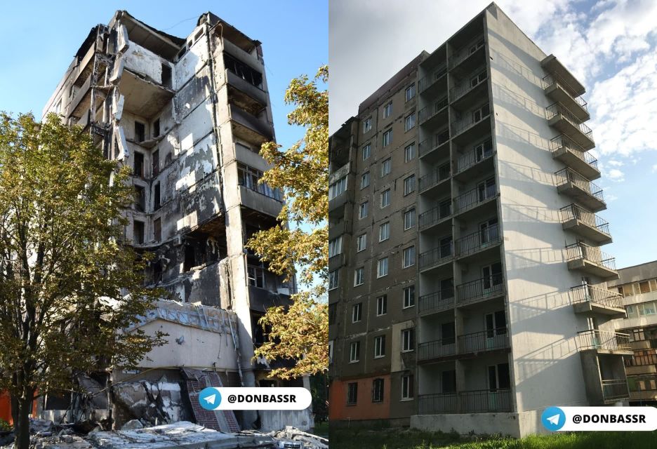 Обрушившийся под обстрелами подъезд восстал как Феникс из пепла.