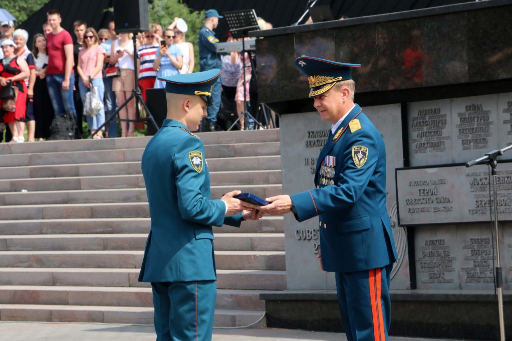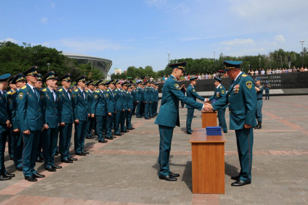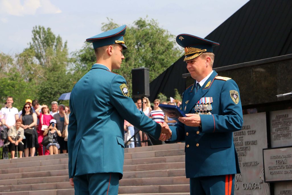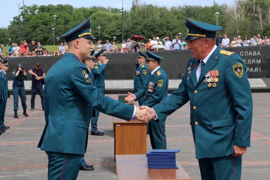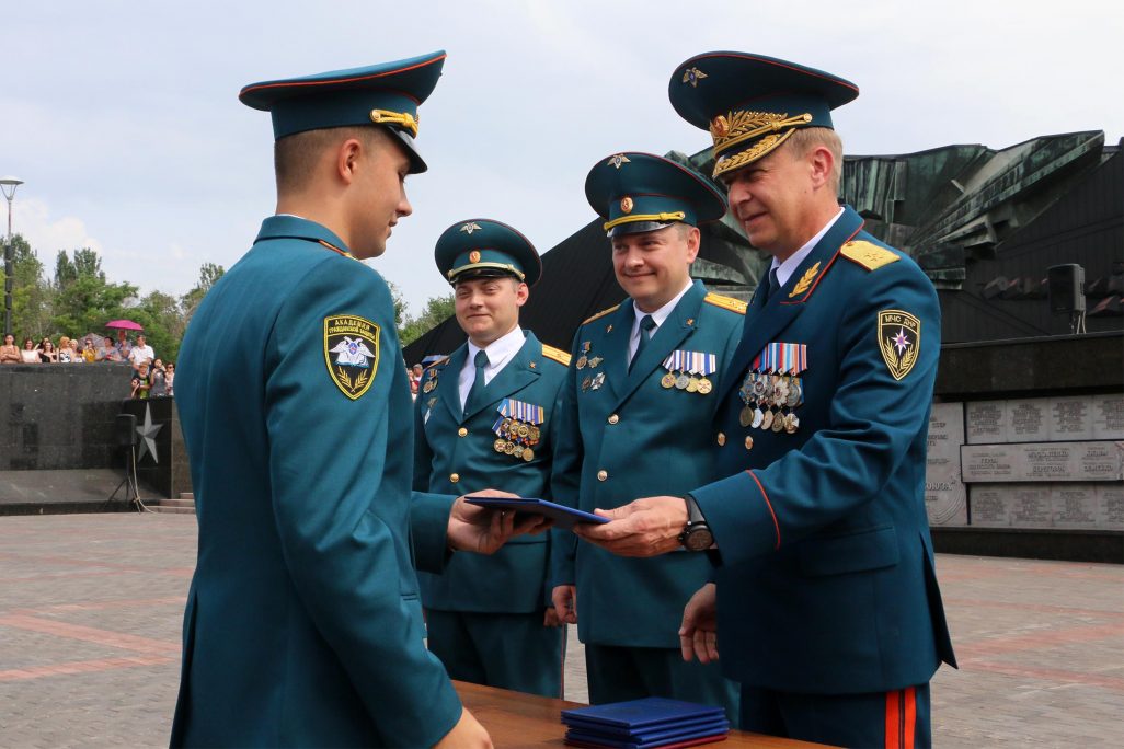 Сегодня, 26 июня, возле монумента «Твоим освободителям, Донбасс!» в Донецке состоялось торжественное мероприятие, посвященное выпуску офицеров Академии гражданской защиты МЧС ДНР. Как сообщает корреспондент официального сайта ДНР, дипломы о высшем образовании получили 40 выпускников и им присвоено первое офицерское специальное звание «лейтенант службы гражданской защиты». Это третий выпуск офицеров специализированного вуза нашей Республики.