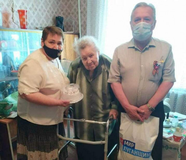 Координатор проекта "Забота о ветеранах" ОД "Мир Луганщине" в Стаханове, председатель городской организации ветеранов Евгений Шумейко и член Общественной палаты ЛНР Людмила Луганская побывали в гостях у участницы Великой Отечественной войны Зинаиды Дымовской, которая в годы немецко-фашистской оккупации Стаханова была хозяйкой явочной квартиры подпольной молодежной группы "Елочка".