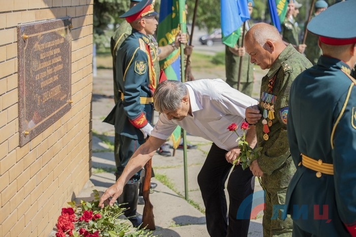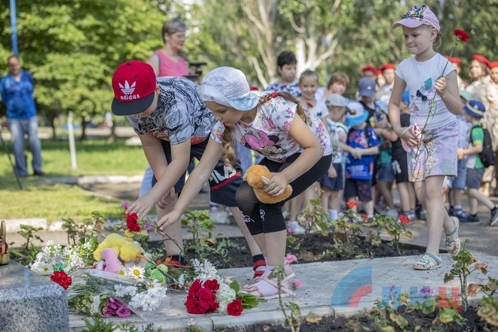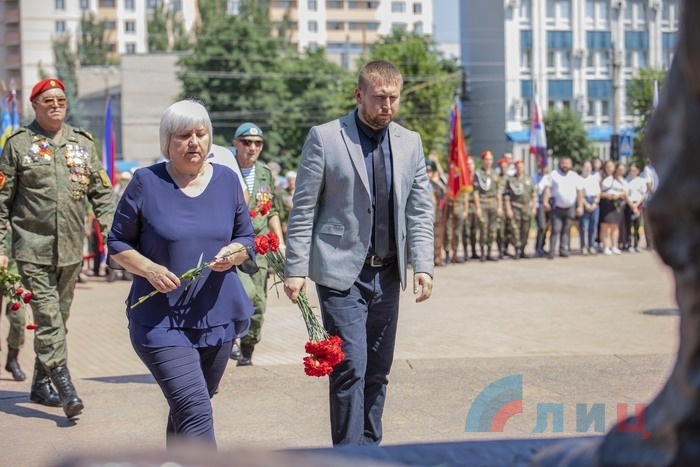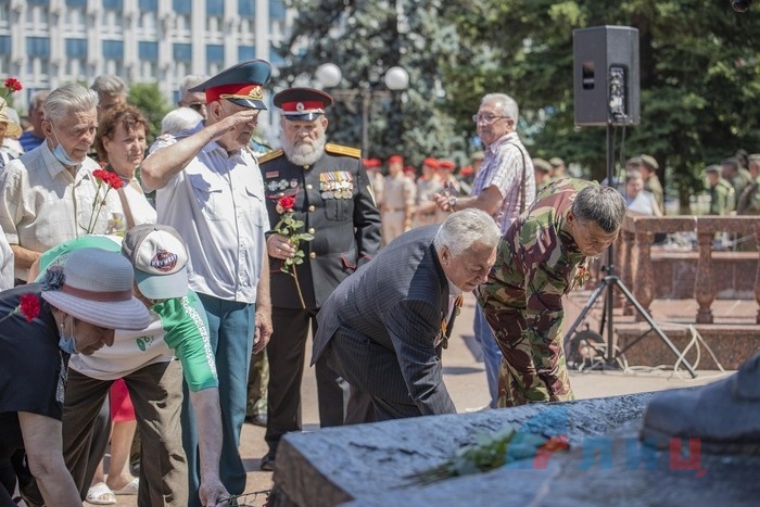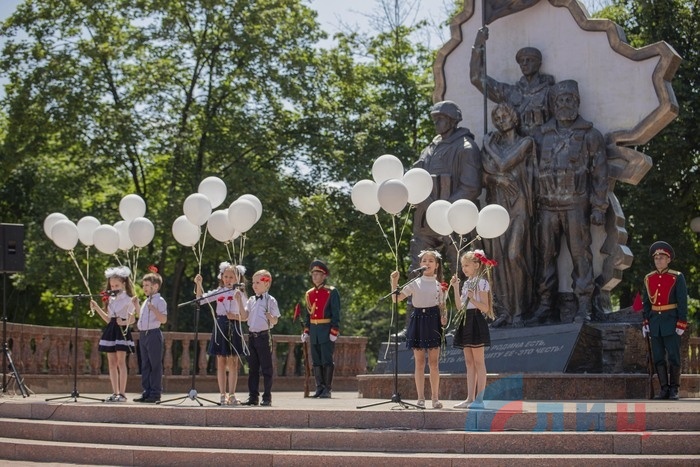 В столице ЛНР 1 июля молодежь и общественные деятели республики провели парад, посвящённый дню памяти ветеранов боевых действий. Хотя данное мероприятие пока не является государственным праздником, но тем не менее, его традиционно отмечают каждый год в первый день июля. В этом году участие в мероприятии приняли воспитанники военно-патриотического движения «Молодая гвардия – Юнармия». Начало шествия стартовало от столичного парка имени Щорса, где юнармейцы во главе с председателем Народного Совета Денисом Мирошниченко, возложили цветы к памятному знаку погибшим детям Донбасса, после чего направились к мемориалу «Я Десантник», где почтили память воинов-десантников, а затем продолжили шествие в сквер пограничников и памятному знаку, установленному погибшим при авиаударе по облгосадминистрации 2 июня 2014г. В завершении мероприятия, юнармейцы отправились в сквер «Они отстояли Родину» где председателем Народного совета ветеранам боевых действий были вручены награды, а возле самого памятника были выпущены белые воздушные шары, в честь светлой памяти кто погиб защищая границы Родины. В рамках отмечания дня памяти ветеранов боевых действий, для воспитанников военно-патриотического движения молодая гвардия – юнармия был организован премьерный показ художественного фильма о героическом советском летчике Михаиле Девятаеве.